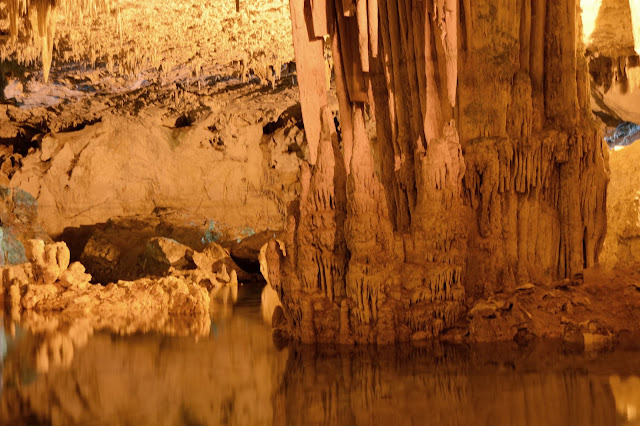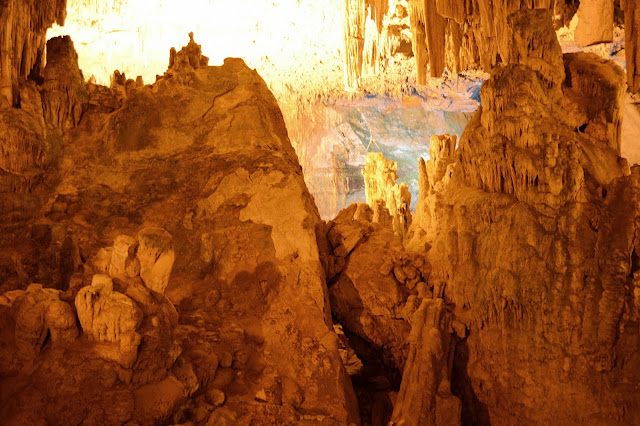 The entrance to the cave lies only around a metre above the sea level at the foot of the 110-metre-high Capo Caccia cliffs and the cave can therefore only be visited when the waters below are calm. To reach the entrance of the cave, one has to go down a 654-step stairway ! But the problem is that once you've visited the inside of the cave, you have to go up all the stairs and you end up tired, especially if it's a very hot day.