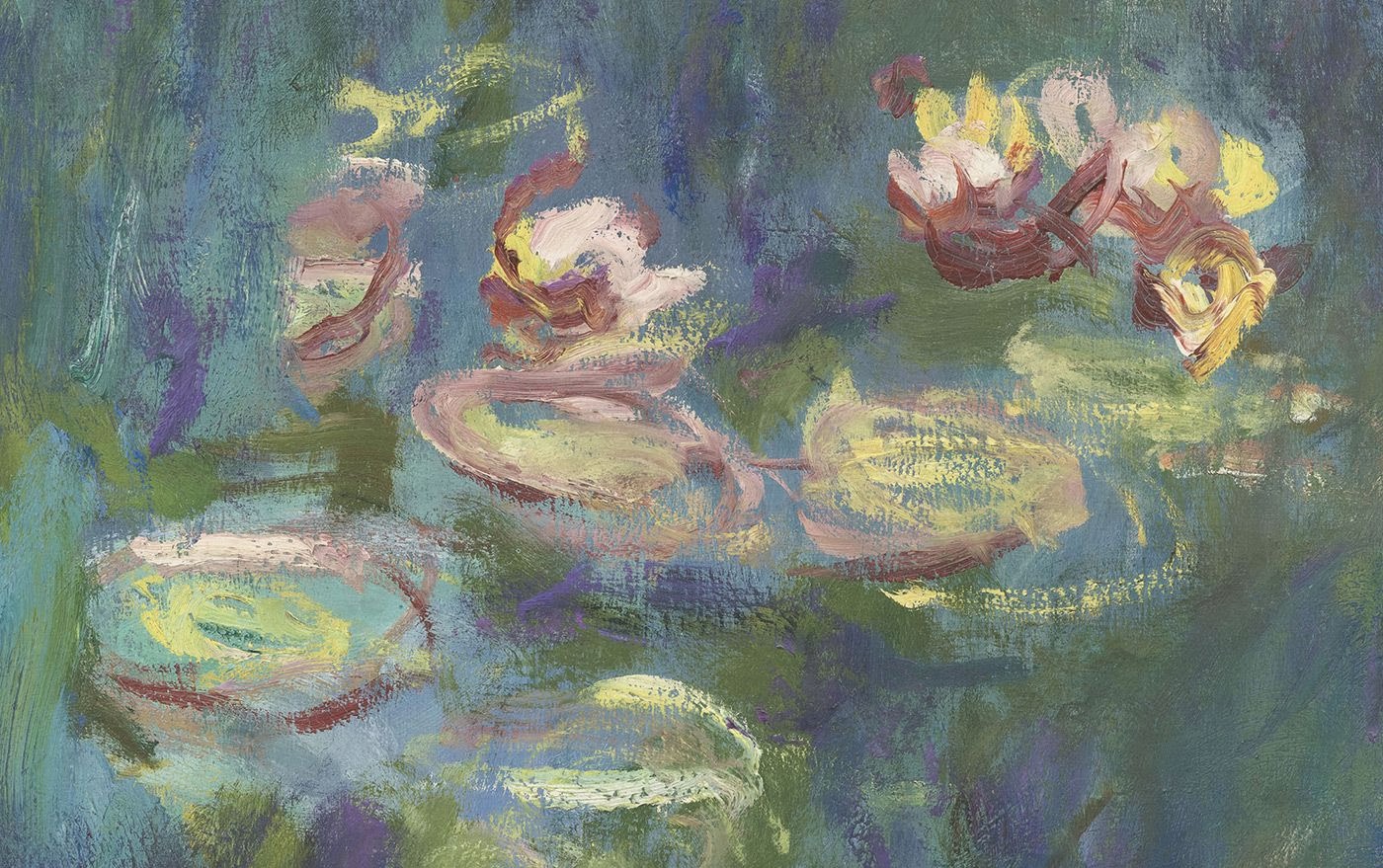 sans perspective et rythmée par les fleurs de nymphéas. Le peintre donne